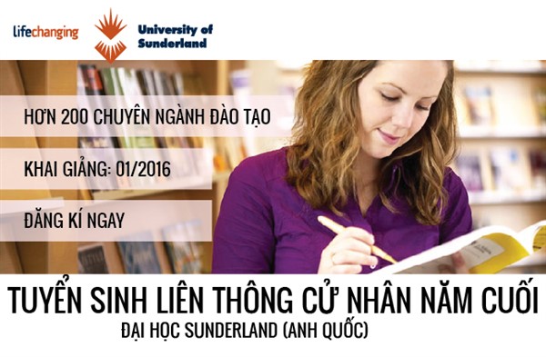 Tự hào là một trong những trường Đại học hàng đầu Anh Quốc, Đại học Sunderland không ngừng nỗ lực mang đến cho sinh viên quốc tế các chương trình học chất lượng và linh hoạt. Nhằm mục đích hỗ trợ sinh viên Việt Nam có nguyện vọng lấy bằng Cử nhân của Anh, Trung tâm Giáo dục Quốc tế TEG trân trọng giới thiệu chương trình Liên thông Cử nhân năm cuối tại Đại học Sunderland với thông tin như sau:
