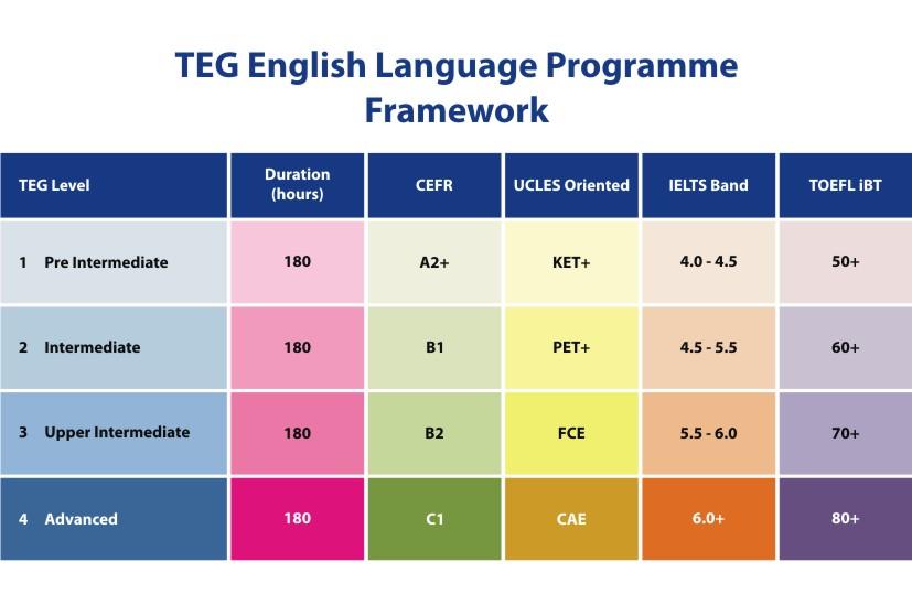 * Chứng chỉ tiếng Anh, cấp độ 4 (TEG English Language Level IV Certificate) do Trường Cao đẳng Quốc tế TEG, Singapore cấp. Văn bằng này có giá trị tương đương với Chứng chỉ IELTS 6.0 hoặc TOEFL iBT 80.