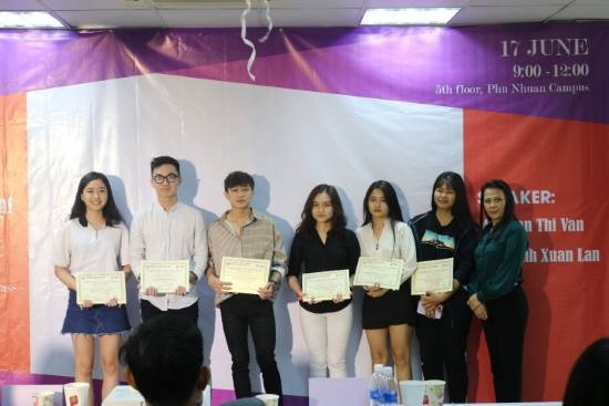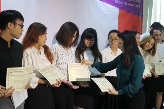 Ms. Beth C. Candol - giảng viên giảng dạy môn học trao giấy chứng nhận cho các bạn sinh viên.
