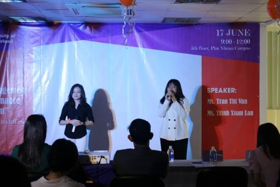 Chương trình có sự góp mặt của 2 diễn giả: Ms. Trần Thị Vân - quản lý nhân sự Công ty Mondelez International và Ms. Trịnh Xuân Lan - quản lý nhân sự Công ty Cargill Animal Nutrition Thailand & Vietnam.